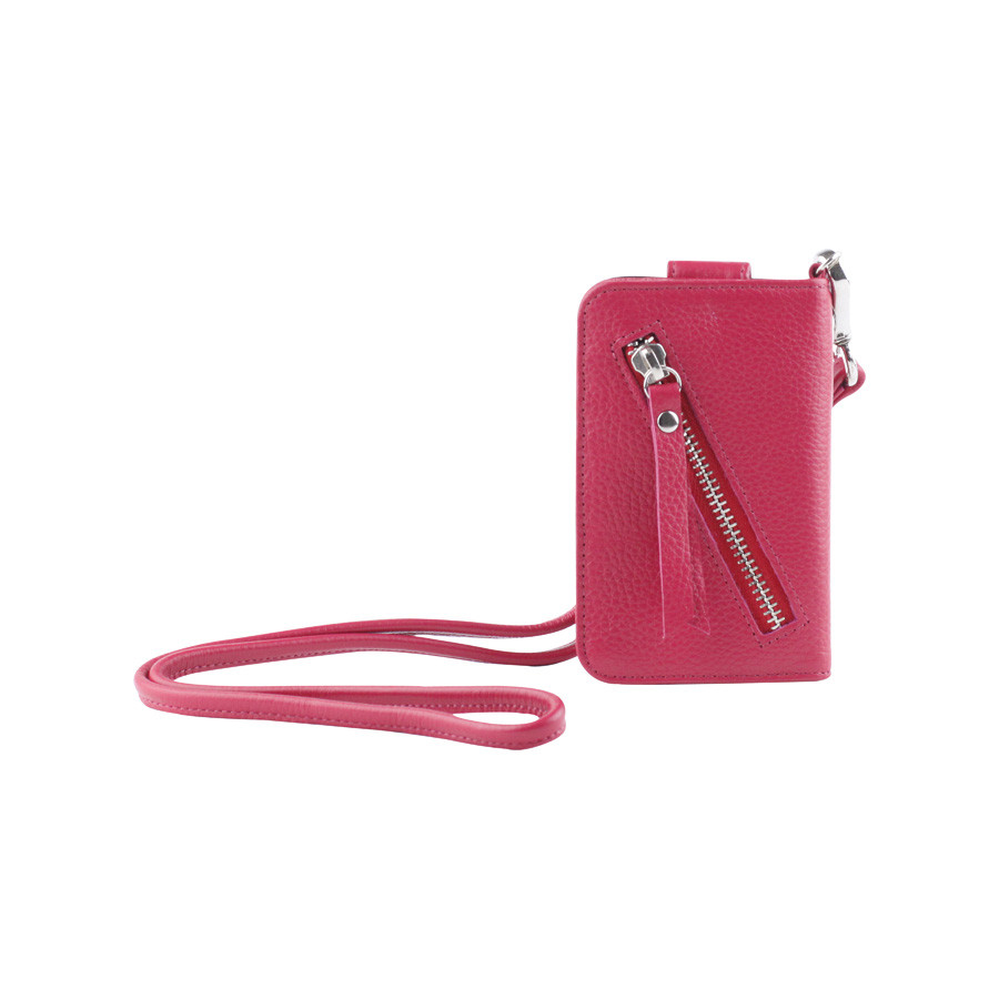 Mira Mobile Purse in Pink, fits for the following mobiles: Iphone 3, 4 & 4s. Made in Cow Leather, the measurements are 13 x 8 x 2 cm.