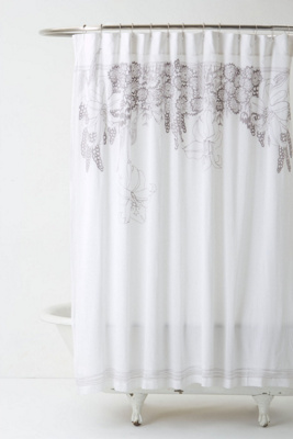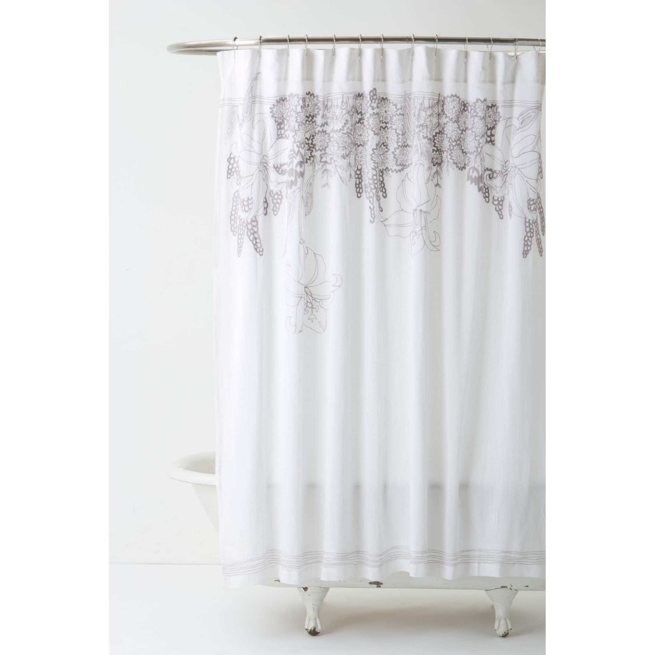 Recoleta Shower Curtain Hanging fruits and washed out florals fade into crisp cotton.