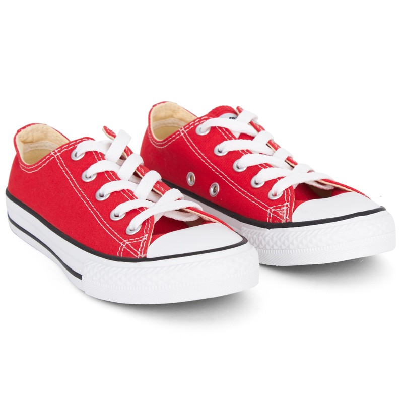 In a bold red hue, these classic Converse low-tops will add a cool edge to your child’s ensemble. Boasting branding across the tongue, inner-sole and mid-sole, simple white laces will keep them secure. Complete with waffled, non-slip rubber soles, your little one will be bursting will style confidence.