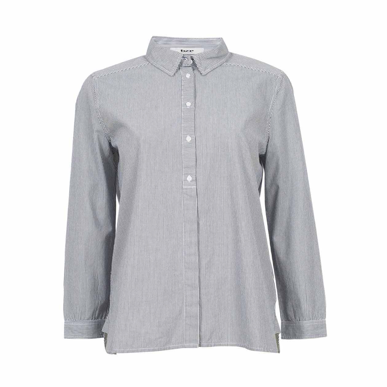 Suzie striped oxford shirt in Medieval Blue. A Danish size 36 is a UK10, shoulder to hem measures 64.2cms/25.3″. Fabric composition is 100% Cotton. Machine Wash 40 degrees.